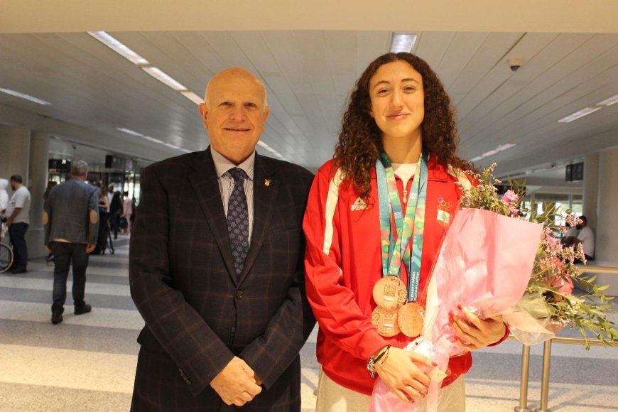 أقامت اللجنة الأولمبية اللبنانية حفل إستقبال تكريمي للسباحة البطلة لين الحاج ظهراليوم في قاعة الوصول لمطار رفيق الحريري الدولي بعد عودتها من الرياض حيث شاركت في دورة ألعاب التضامن الإسلامي السادسة ( الرياض – 2025 ) في منافسات مسابقة السباحة وأحرزت 3 ميداليات برونزية في 3 سباقات لمسافات 200 م و100 م و50 م صدر وكانت واحدة من المتمايزات في هذه الرياضة ومحط إعجاب وتقدير من جانب اللجنة المنظمة للدورة وإستحوذت على متابعة وإهتمام الإعلام العربي والأجنبي الذي يواكب هذ الحدث الهام الذي نظمته السعودية بأعلى المعايير والشروط الإحترافية وشاركت فيه سباحات من أقوى الدول .