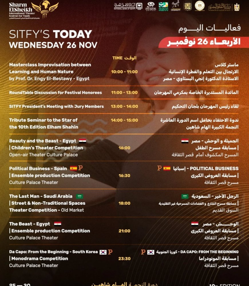 تكريم إلهام شاهين يزين افتتاح الدورة العاشرة من مهرجان شرم الشيخ الدولي للمسرح الشبابي